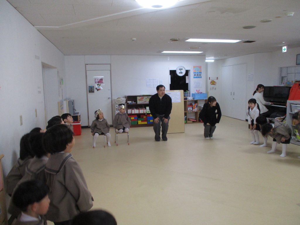 16日(月)は、2月生まれのお誕生会をしました。ちゅうりっぷ、かえるの歌、めりーさんのひつじ、ちょうちょの曲の中から誕生児がくじを引いて、曲の選択と曲に合わせて動作をしながら歌うことを割り振りして、それぞれのクラスの子どもたちと職員が、チャレンジして楽しみましたよ。